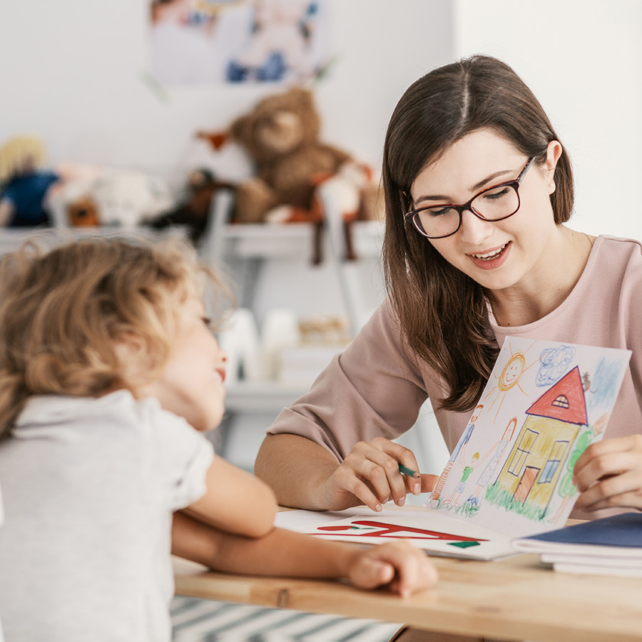 Utilizamos abordagens lúdicas e adaptadas, como jogos, desenhos e histórias, para criar um ambiente acolhedor. O objetivo é facilitar a expressão de sentimentos e pensamentos de maneira acessível e confortável.